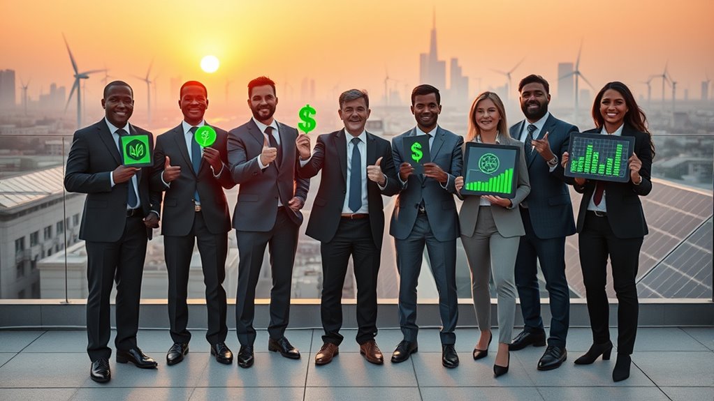 Investing in renewables offers you significant long-term financial benefits through cost savings and strong investment returns. You’ll enjoy lower operating and maintenance costs once the initial setup is complete, and long-term power purchase agreements provide predictable income. Plus, government incentives like tax credits boost your returns, making renewables a stable, profitable choice. These factors combine to reduce risks and enhance your overall financial stability and growth prospects.