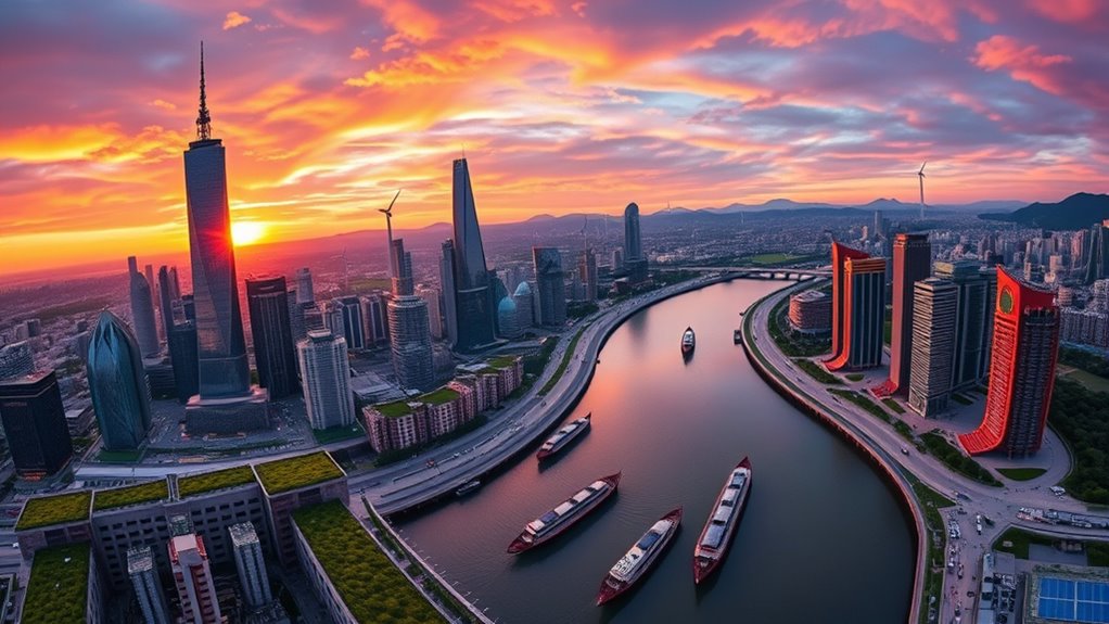 China’s new climate plan is a major step, pledging a 7–10% reduction in GHGs from peak levels by 2035 and emphasizing both intensity and absolute emission cuts. It aims to boost renewable energy, cut fossil fuel use, and achieve a clean transportation future, all while supporting global efforts to limit warming. If you want to understand how this landmark commitment may reshape the world’s climate landscape, there’s more to explore.
