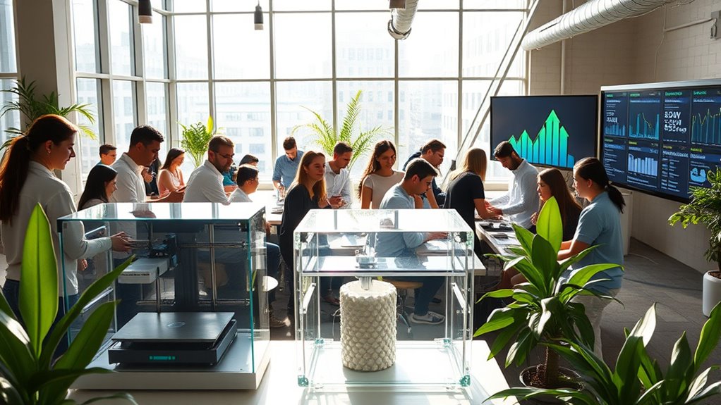 You measure environmental impact by using carbon accounting to track greenhouse gas emissions across your operations, ensuring accurate data. You also rely on sustainability metrics, like GHG reduction potential, to assess your startup’s contribution to climate goals. Advanced sensors and AI-powered tools enable real-time monitoring, while lifecycle assessments provide exhaustive environmental performance. Transparent reporting and alignment with international standards help communicate your impact clearly, attracting investors and building trust with stakeholders.