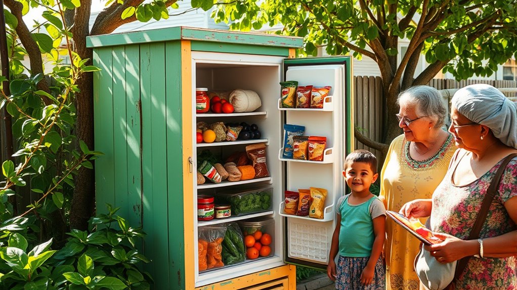 Neighbors come together to create a “free-fridge library” stocked with healthy meals, providing immediate relief from food insecurity while strengthening community bonds. You can contribute homemade or store-bought nutritious food, helping maintain this shared resource. It not only alleviates hunger but also promotes better nutrition and builds trust among neighbors. If you want to discover how this simple idea is making a big difference locally, keep going to learn more.