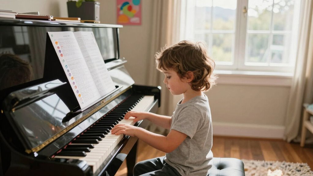 By establishing a consistent practice habit, you’ll notice your child’s progress accelerates and their confidence grows. Research shows that kids who practice regularly are 50% more likely to stick with piano long-term. So, make practice a daily routine, even if just for a few minutes. This simple habit not only keeps them engaged but also transforms playing into a joyful, lifelong journey. Keep at it, and you’ll see incredible results unfold!