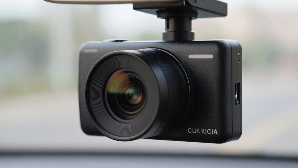You’ll notice that larger sensor sizes improve low-light recording quality because they enhance night vision and increase sensor sensitivity. With a bigger sensor, your dash cam gathers more light, resulting in clearer images during nighttime or in dim conditions. This means better detail and less grainy footage. So, if night recording matters to you, prioritize a dash cam with a larger sensor size, as it markedly boosts low-light performance.