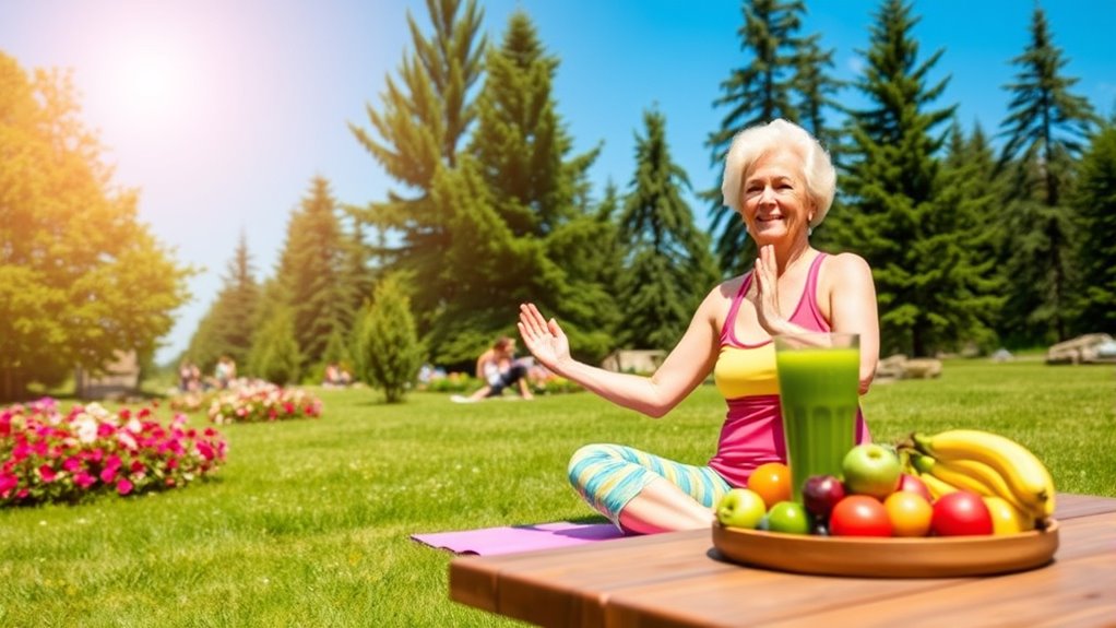 Physical activity remains a cornerstone of a healthy aging routine. Aim for at least 150 minutes of moderate exercise weekly, such as walking, swimming, or cycling. Incorporate muscle-strengthening activities to preserve muscle mass and bone density, which lowers fall risk. Balance-enhancing practices like Tai Chi or yoga can also improve flexibility and prevent accidents. Remember, it’s important to adapt your routines under healthcare guidance, especially if you have existing health conditions. Exercise not only supports your physical health but also boosts cognitive function, helping you manage depression and anxiety more effectively.