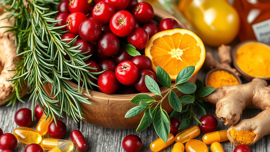 Many herbs and supplements are marketed as natural immunity boosters, but scientific evidence shows they offer limited benefits for healthy individuals. While some, like echinacea or turmeric, may influence immune markers, they don’t reliably prevent illness. Taking large doses or relying solely on these remedies isn’t safe or effective. To support your immunity, focus on a balanced diet, sleep, and stress management. Keep exploring to discover what truly helps your immune health.