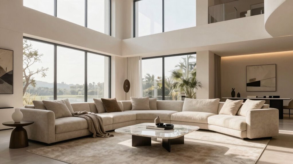 This approach also invites you to see your home as a reflection of your values. Instead of loud statements, you find beauty in the details—carefully selected fixtures, subtle textures, and harmonious color palettes. Architectural innovation pushes these elements further, creating fluid gradations between rooms and outdoor spaces. It’s about designing with intention, ensuring every feature serves a purpose, and every material enhances the overall serenity of your environment. Incorporating timeless design principles ensures that your home remains elegant and relevant for years to come, emphasizing quality and longevity. Quiet luxury emphasizes quality over quantity, encouraging you to invest in fewer, better pieces that age gracefully and develop a story over time.
