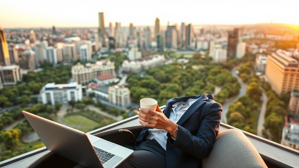 Bleisure travel lets you mix work trips with leisure activities, giving you the chance to explore destinations or unwind after meetings. With advances in travel technology, you can easily customize and manage your trips, extend your stays, and find fun activities nearby. The market for bleisure travel is growing fast, driven by remote work and improved connectivity. Keep exploring to discover how this trend can boost your travel experiences even further.