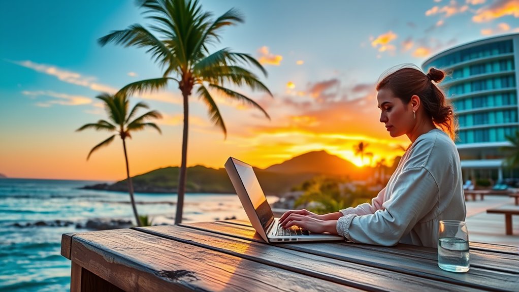 In 2026, some countries are offering unique opportunities by not taxing digital nomads on their income. This zero-tax policy can considerably boost your earning potential since you’ll keep more of your income without hefty tax burdens. Countries like Barbados, Georgia, and certain Caribbean islands have introduced or continued to maintain favorable tax regimes for digital nomads, making them attractive destinations. These countries recognize that appealing visa policies combined with tax incentives can draw remote workers from around the globe, encouraging longer stays and economic engagement.