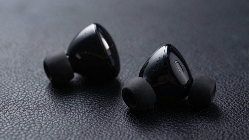 Water-resistant and waterproof features are widely available in travel earbuds. You’ll find models designed to resist sweat, rain, and splashes, perfect for adventurers and travelers. Look for earbuds marked with IPX ratings, especially IPX4 or higher, to guarantee water resistance. These earbuds withstand weather woes, so you can enjoy your playlist without worrying about water damage, whether you’re caught in a sudden shower or sweating during a hike.