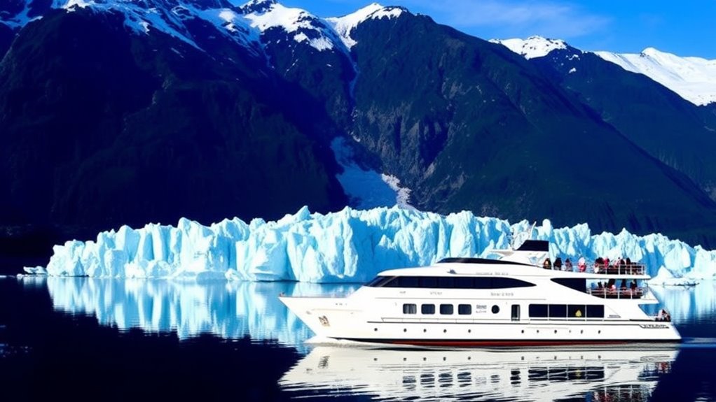 You might wonder about the sustainability of glacier cruises, and they’re becoming more eco-friendly. Operators reduce their carbon footprint through initiatives like cleaner fuel use and waste management systems. Many also support conservation efforts in fragile environments. While they’re not perfect, these eco-friendly initiatives show a commitment to protecting glaciers and surrounding ecosystems, allowing you to enjoy breathtaking views while minimizing environmental impact.