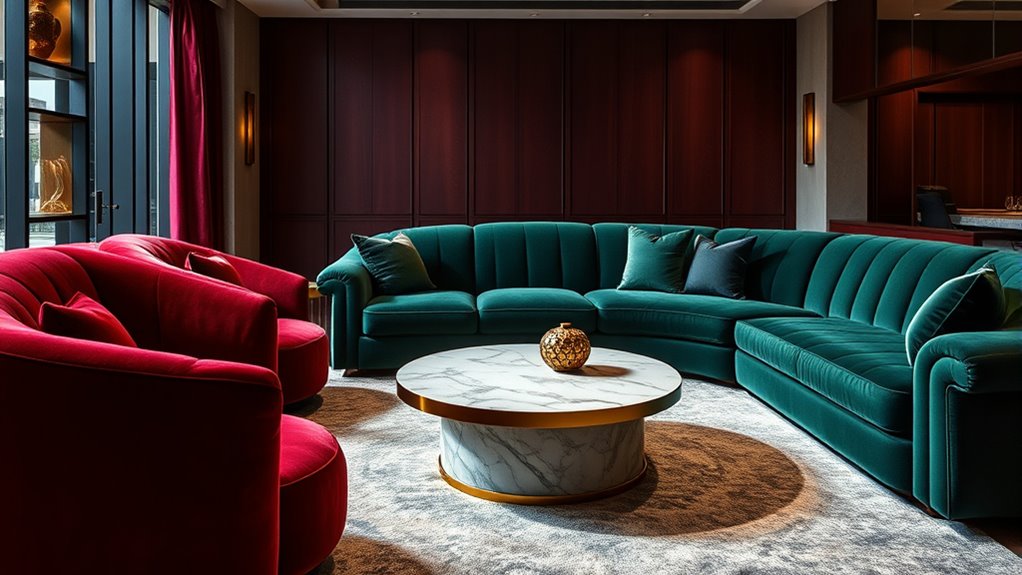 You’ll find that fat furniture commonly uses high-quality foam padding for comfort and durability, ensuring long-lasting support. Velvet upholstery is popular for its luxurious feel and rich appearance, adding a touch of elegance to oversized pieces. These materials work together to create inviting, plush seating that’s both stylish and practical, perfect for hospitality settings where comfort and aesthetics are key.