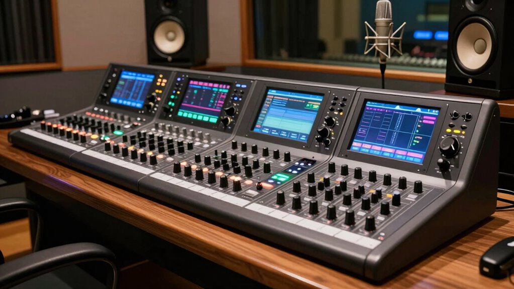 If you’re searching for the 15 best digital mixers for recording studios in 2026, I’ve found a fantastic range that offers top sound quality, versatile connectivity, and advanced features like built-in effects and multitrack recording. From compact models like the Berlingtone and Aveek to high-end options like the PreSonus StudioLive, there’s something for every need and budget. Keep exploring to discover which digital mixer fits your studio setup perfectly.