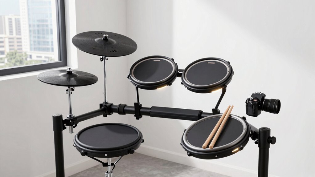 Choosing an electronic drum kit for apartment living means paying close attention to noise control features. Mesh heads are a game-changer—they produce much less noise than rubber pads, making practice sessions more neighbor-friendly. Adjustable volume controls on the sound module let you set a comfortable level, so you can practice without disturbing others. Many kits come with headphones, allowing silent practice anytime, which is perfect for late-night sessions. Adding sound dampening materials or placing the kit on a carpet can further reduce sound transmission. Features like soft cymbals and responsive pads help lessen impact noise while maintaining a realistic feel. Prioritizing these noise control options ensures you can enjoy drumming without risking complaints or disturbing your apartment neighbors.