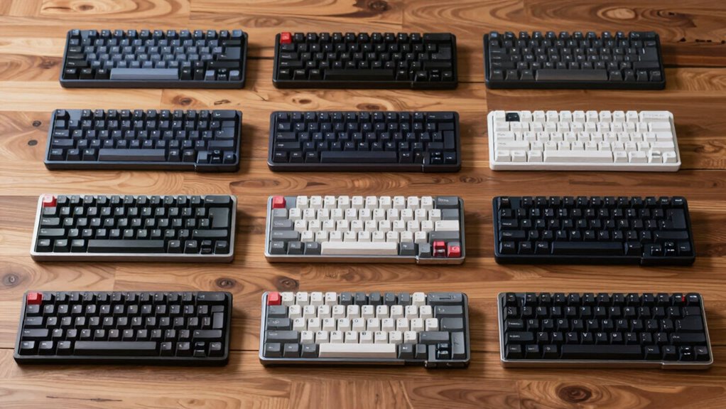 Selecting the right key switch type is essential for customizing your ergonomic split keyboard to fit your typing preferences and environment. Mechanical switches provide tactile feedback and durability, making them great for users who want a responsive, long-lasting experience. They often require more force but deliver satisfying feedback, ideal for extended typing sessions. Membrane switches, on the other hand, tend to be quieter and less expensive, making them suitable for office settings where noise is a concern. The switch type also affects typing force and comfort, which can impact productivity over time. Some ergonomic split keyboards support hot-swappable switches, allowing easy customization and replacement without soldering. Ultimately, choosing the right switch depends on your noise preferences, typing feel, and how long you plan to use your keyboard daily.