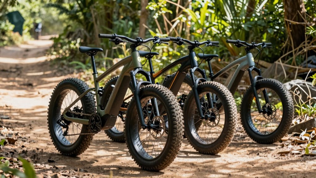 Choosing a fat tire electric bike that matches your terrain is essential for a smooth and safe riding experience. First, I check if the tires are suitable for my primary environment—whether I’m riding on snow, sand, or rocky trails—since 4-inch wide tires work well across these surfaces. I also look at the suspension system to ensure it can absorb shocks on uneven terrain, preventing discomfort and damage. It’s important to verify that the motor’s power and torque can handle steep inclines or loose gravel without strain. Additionally, I consider the bike’s clearance and frame design to navigate obstacles like roots or deep snow. Lastly, I pay attention to the tire tread pattern and material for the best grip, stability, and durability in varied conditions.