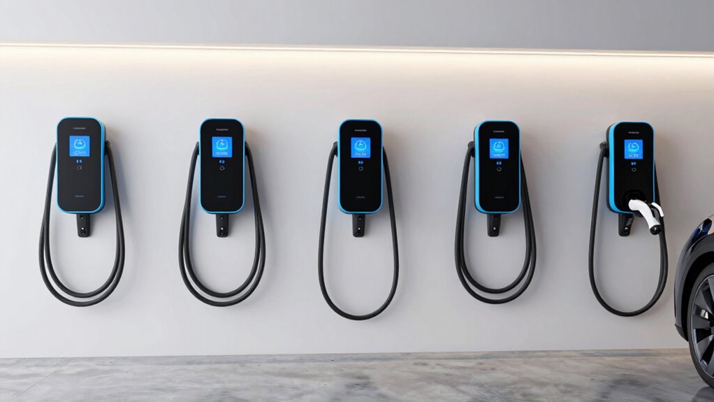 Smart features and control options substantially enhance the usability and convenience of your home Level 2 EV charger. With Wi-Fi, Bluetooth, or Ethernet connectivity, I can remotely monitor and control charging sessions through a mobile app. This allows me to set charging schedules, adjust amperage, and receive real-time notifications about charging status and completion, making managing my EV effortless. Advanced controls also support over-the-air firmware updates, ensuring the charger stays secure and up-to-date. Many chargers include energy consumption tracking, cost monitoring, and historical data, helping me optimize my home energy use. To prevent unauthorized access, some models offer RFID start/stop capabilities or password protection, adding an extra layer of security. These features make my charging experience more flexible, efficient, and secure.
