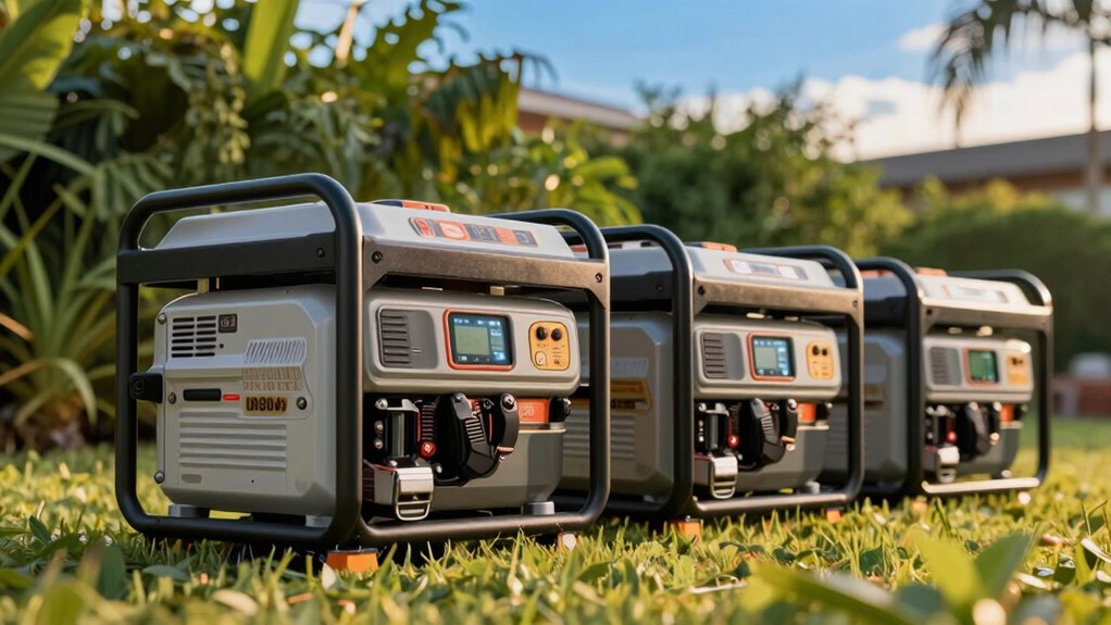 Choosing the right fuel type for your portable generator depends on your specific needs and preferences. Gasoline models are common, easy to find, and quick to refuel, but they might need more frequent maintenance and have shorter runtimes. Propane generators burn cleaner, produce less residue, and can be stored longer, making them ideal for emergency preparedness. Diesel generators are more fuel-efficient and durable, especially for heavy-duty tasks, but tend to be larger and more costly. Dual-fuel options offer flexibility, allowing you to switch between fuels based on availability or situation, which boosts reliability. Each fuel type has distinct advantages, so consider your usage patterns, storage options, and maintenance preferences when selecting the best option for your needs.