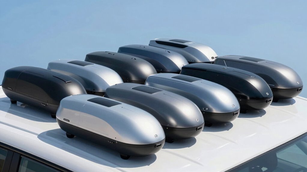 Imagine your car topped with a sleek, secure hard shell, ready to carry your adventures. With the right rooftop cargo carrier, you’ll effortlessly stash everything from camping gear to holiday gifts, all protected under a tough, weather-resistant shell. It’s like adding a sturdy trunk to your roof, turning your vehicle into a mobile storage unit. Whatever your journey, these top options ensure you travel confidently, knowing your gear is safe and ready for the road ahead.