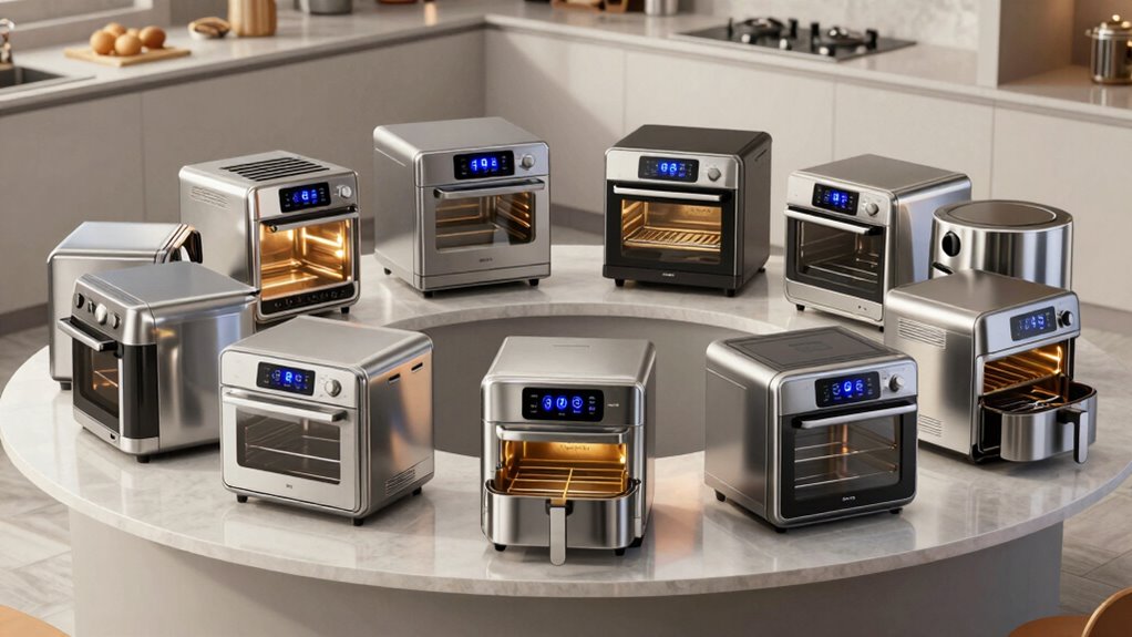 Choosing the right smart toaster oven air fryer can feel overwhelming, but remember, the perfect combo is out there waiting for you—like a culinary superhero ready to save mealtime chaos! Whether you want versatile presets or sleek design, these top picks will elevate your kitchen game to legendary status. Trust me, once you find your ideal model, you’ll wonder how you ever cooked without this all-in-one marvel—your taste buds will thank you forever!