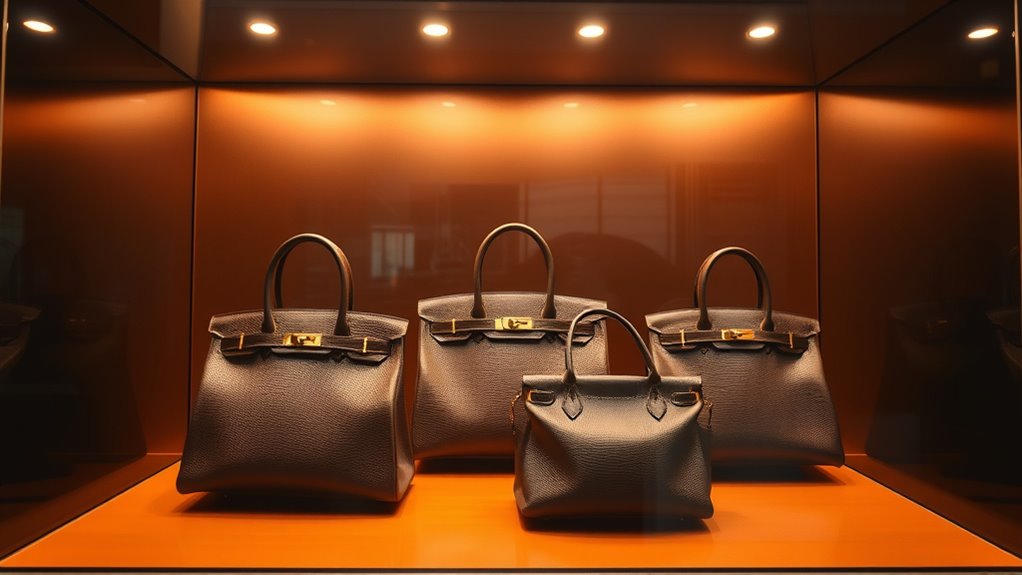 Supply limits directly push up Birkin bag prices because scarcity creates high demand and exclusivity. When Hermès restricts availability, you’ll see long waitlists and higher resale values, often considerably above retail. This deliberate scarcity maintains the bags’ status as luxury investments, making them more desirable and valuable over time. So, the tighter the supply, the more you’ll likely pay, whether buying directly or in the secondary market.